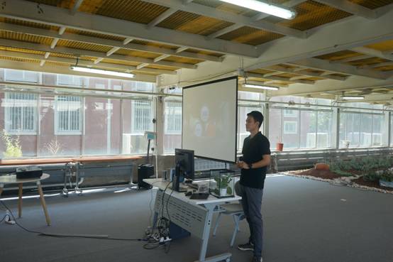 公司高级实验师、本科生第二党支部书记李小顺老师通过宣传片和实地讲解,向同学们介绍了威廉希尔williamhill官方网站智慧农业实验温室的建设目的和意义,重点讲解了智能温室控制系统、植物本体传感器、智能灌溉系统、水质监测系统和智能狗舍等设备设施。