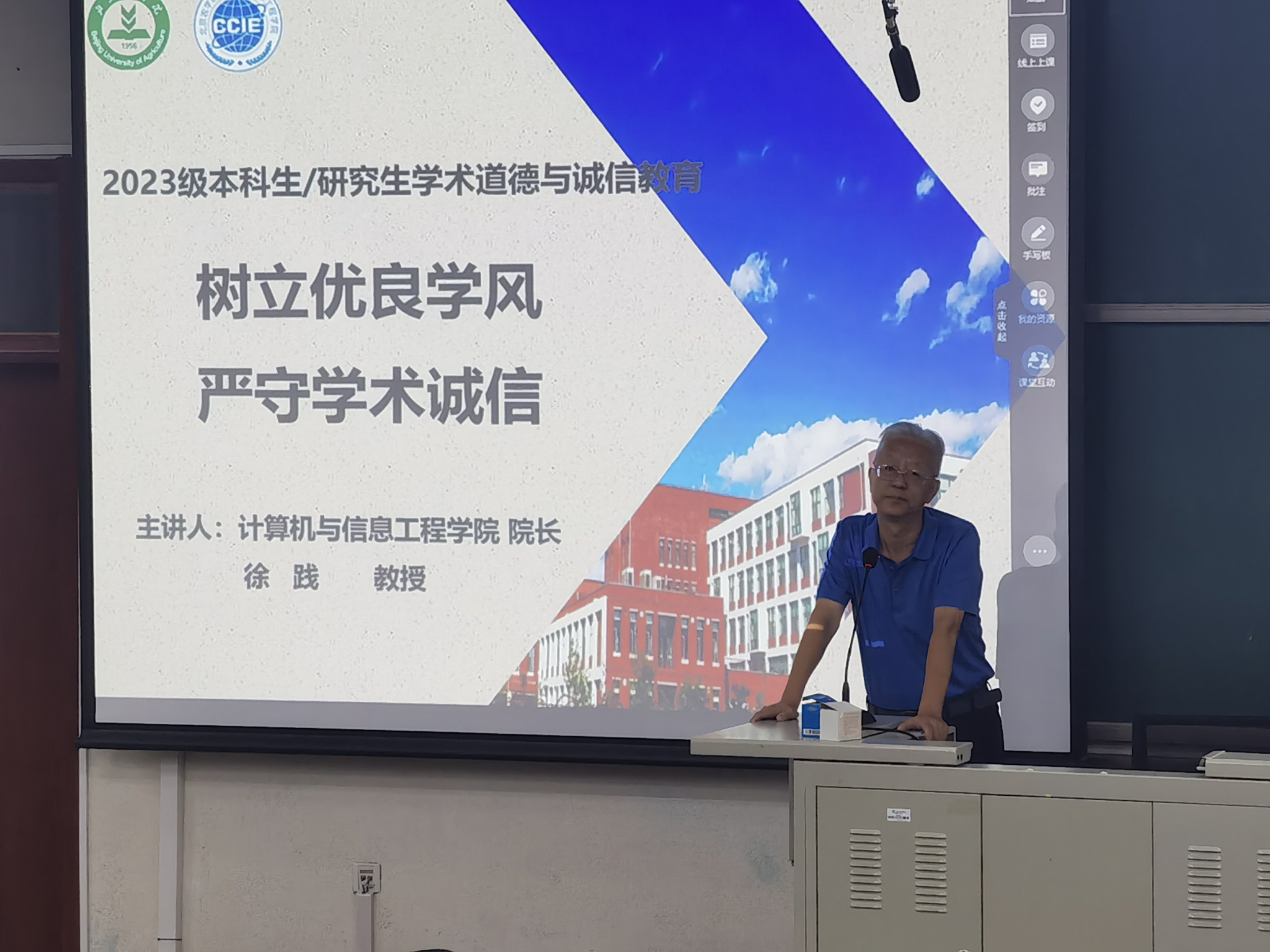 2023年9月8日下午2:00,英国威廉希尔英文官网2023级全体新生入学教育在教B203进行。公司经理徐践为新生进行了学术道德与诚信专题教育-树立优良学风,严守学术诚信。英国威廉希尔英文官网研究生教育坚持以员工成长成才为中心,强化“三全育人”体系建设,为满足全面推进乡村振兴对人才的迫切需求,深化特色鲜明、优势明显的农业领域智能技术与应用科研创新及高层次人才培养教育改革,持续提升研究生教育质量。