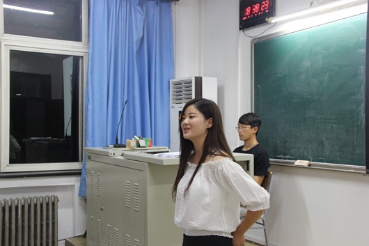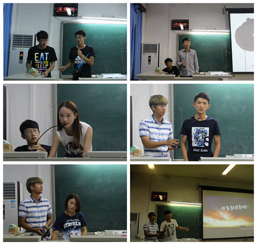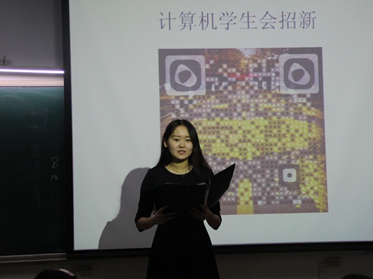 宣传部部长王彦明,简述了宣传部的职能,宣传部的成果及加入宣传部的条件。还展示了历届的活动涂鸦墙,希望大家能够成为宣传部的一员。最后体育部部长石秀军上台表示,无论你是汉子,亦或者是女汉子,萌妹子,只要你热爱这里,这里就是你的体育部。
