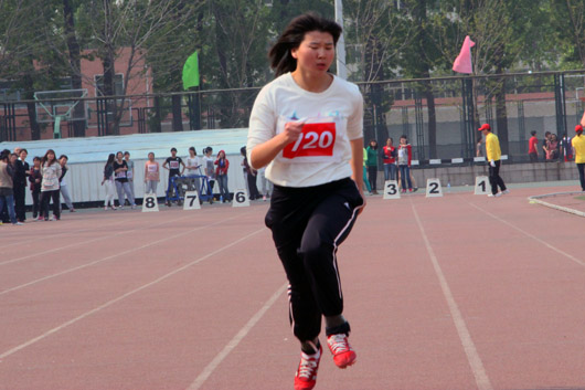 在上午10:05的的女子5000米决赛中,计算机公司王雪丽同学虽然没能进入前8名,但是贵在参与,重在坚持,最后同样取得了不错的成绩。被问到她坚持下来的最大动力是什么时,她提到,是同学们在过程中的支持和观众席上同学们的呐喊声让她没有放弃,一直坚持到终点。