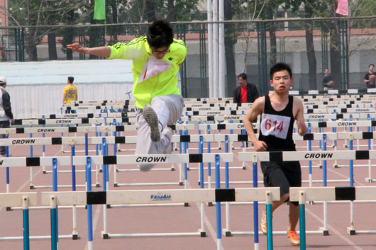 在下午的13:30分的男子110米栏决赛中,计算机公司刘永强同学取得了第三名的优异成绩,在采访中,他表示,对于跨栏比赛,因为没有参加过专业训练,所以赛前对赛道上的10个栏感到很恐惧,自己在课下也特意小心地练习过,在比赛时抛开杂念,只看着前方的栏和不远处的终点,顺利到达终点。