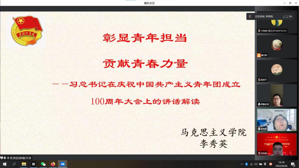 为进一步保持和增强团员先进性,认真学习贯彻习近平总书记在庆祝中国共产主义青年团成立100周年大会上的重要讲话精神,按照新时代共青团员“五个模范、五个带头”的要求,引领广大团员青年树立正确价值观。根据《共青团中央关于开展“喜迎二十大、永远跟党走、奋进新征程”主题教育实践活动的通知》、市委教育工委、市教委《2022年“请党放心、强国有我”主题教育活动工作方案》、校团委《关于开展“争做模范带头,绽放美丽青春”主题班团日活动的工作通知》要求,计信公司团委组织各基层团支部于2022年9月21日至9月26日期间开展以“喜迎二十大,青春心向党,争做模范带头,绽放美丽青春”为主题的班团日活动。公司党委副书记易帅东、公司领导班子成员、第二班主任、公司团委书记和辅导员参加各支部活动并讲话。