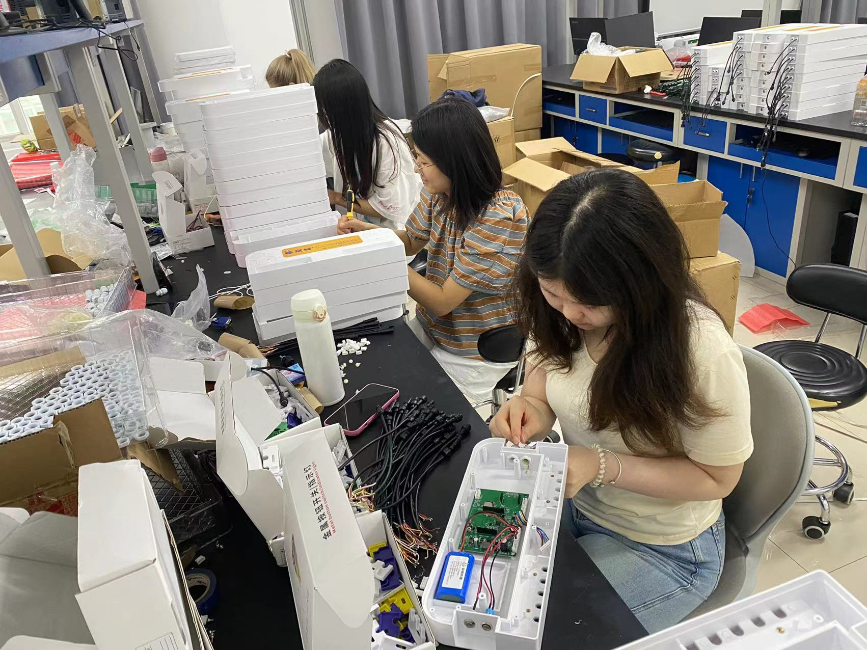 实践小组的同学们从蜂箱组装做起,焊接、拼装、连线、测试,一个小小的蜂箱需要繁琐的很多步骤,每一小部都不能出错,同学们每天高标准、严要求,以保证每一个蜂箱组装的精准度。