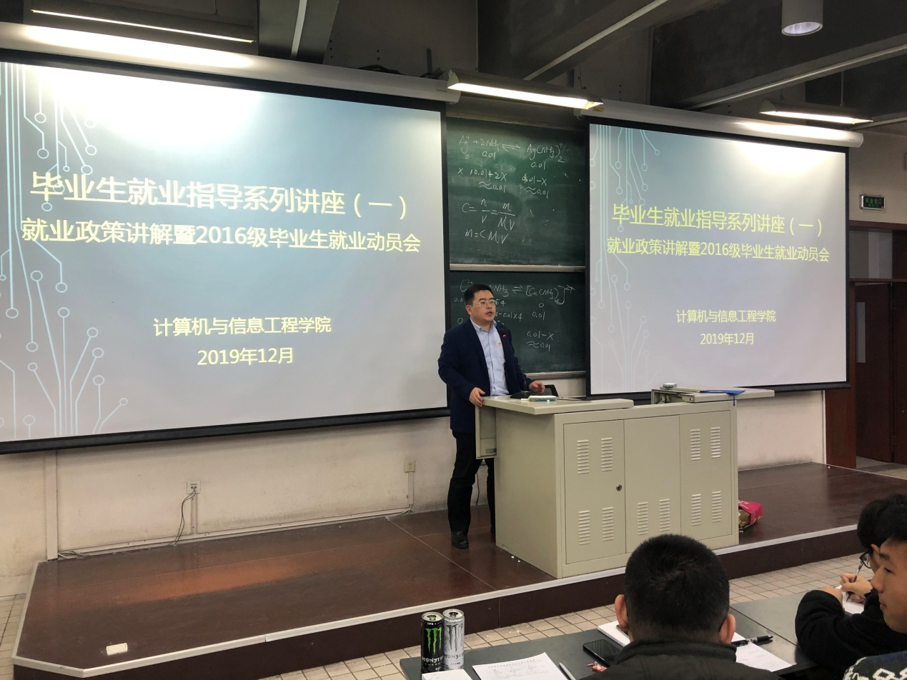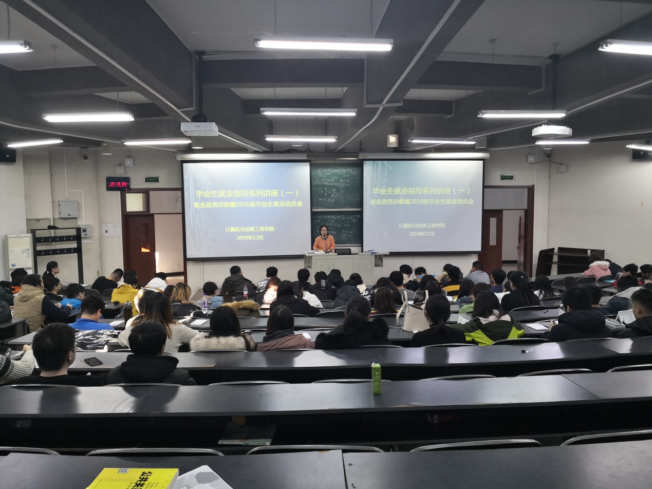 会上,郭贵川老师从一本手册、两份表、三个证、四个时间节点、五面认识自己等五个方面为大家解读了就业政策,分析了目前的就业形势,并详细介绍了就业流程和手续的办理。此外,郭老师还通过往年毕业生就业去向及计算机类专业的特点分析了同学们重点的就业方向。满满的干货让各位毕业生对就业有了直观的认识和了解。
