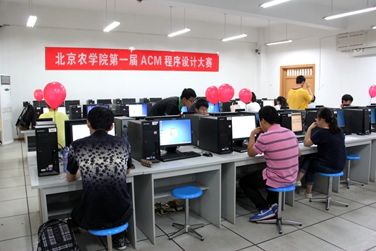 本次比赛过程完全采用ACM的比赛规则,设置的11个题目分别对应不同颜色的气球,当选手提交程序并通过电脑测试后,给予相应颜色的气球奖励。比赛中,参赛者们认真答题,双手不停地敲击着键盘,演奏着属于自己的思维乐章。比赛持续了5个小时,但是大家都仿佛没有感觉到时间的流逝,每一名参赛者都高度集中精神,眼中只有比赛题目。北京林业大学的三位同学也应邀来到公司参加了这次比赛。