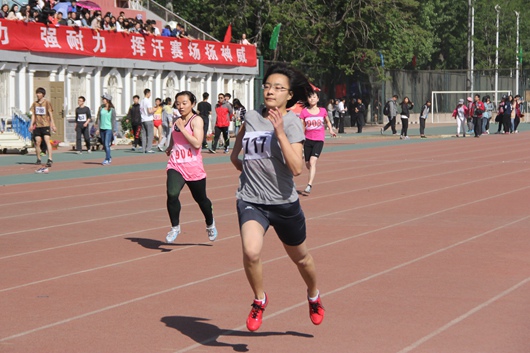 运动健儿们成绩的取得也离不开辛勤的后勤保障人员,早上不到八点,体育部的同学就布置好了服务台,为运动员和观赛同学准备良好的后勤服务保障。台上的观众们更是准备好了加油的道具,为运动员们加油呐喊。