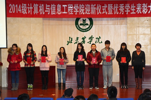 12月4日,计算机公司迎新仪式暨优秀员工表彰大会在图书馆报告厅隆重举行。公司党政领导班子、系主任、班主任、辅导员、教师代表以及全体2014级员工参加大会。