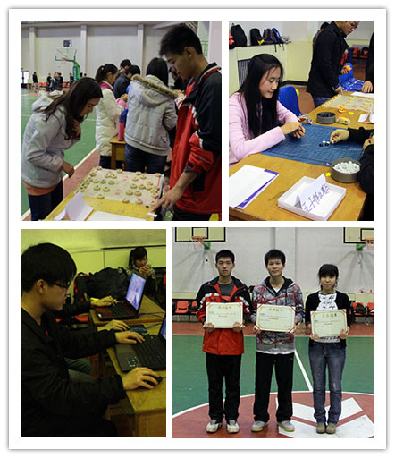 在活动现场,同学们很快的找到了自己擅长的活动,每个活动专区都挤满了参赛者。篮球场上,大家很快的投入到比赛中,激情飞扬,热情似火;三国杀活动专区,同学们也进入了激烈的“战争”状态;五子棋和象棋活动区参与同学最多,“观棋不语真君子”,观众们在一旁安静的观看着棋盘风云。所有的活动结束后,还进行了精彩的颁奖典礼,为获奖的同学颁发了证书和奖品。