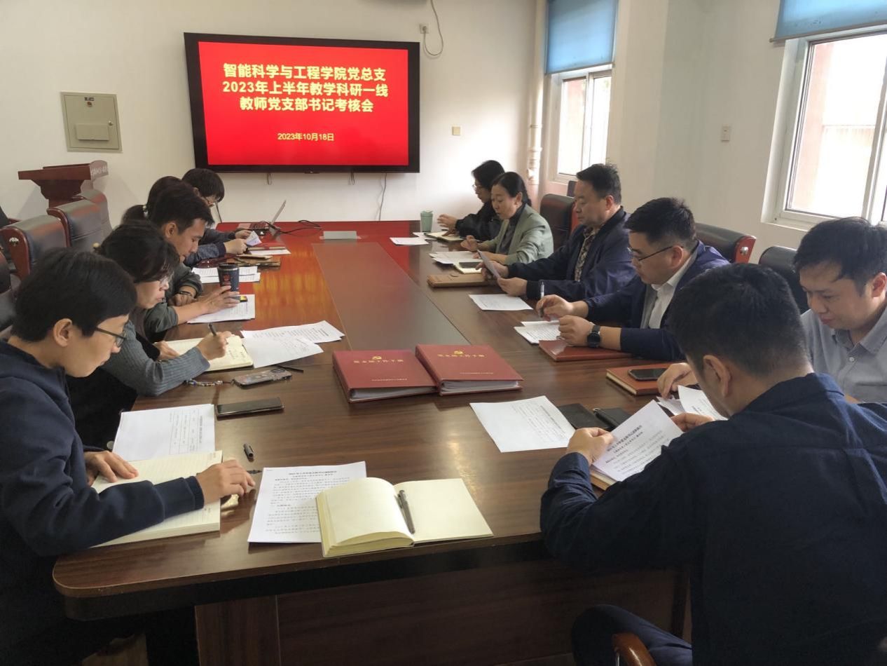 在考核测评环节,与会人员现场填写《2023年英国威廉希尔英文官网教学科研一线教师党支部书记考核表》。